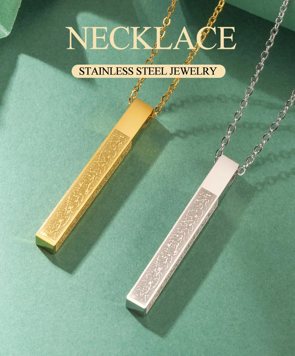 "Ayatul Kursi Necklace – Premium Arabic Calligraphy Pendant for Men & Women | Stainless Steel Quran Amulet | Islamic Jewelry Gift for Eid & Ramadan"